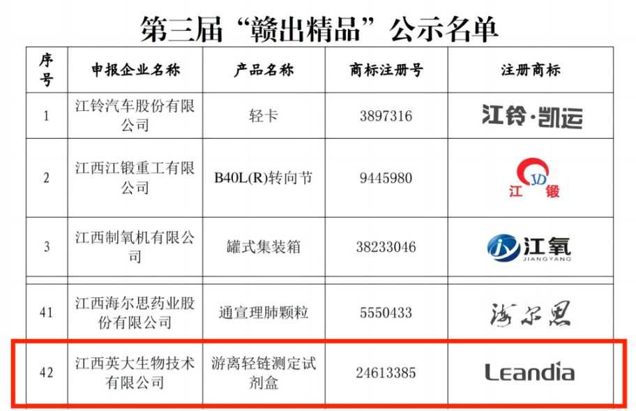 榜上有名||英大生物游離輕鏈測定試劑盒入選“贛出精品”